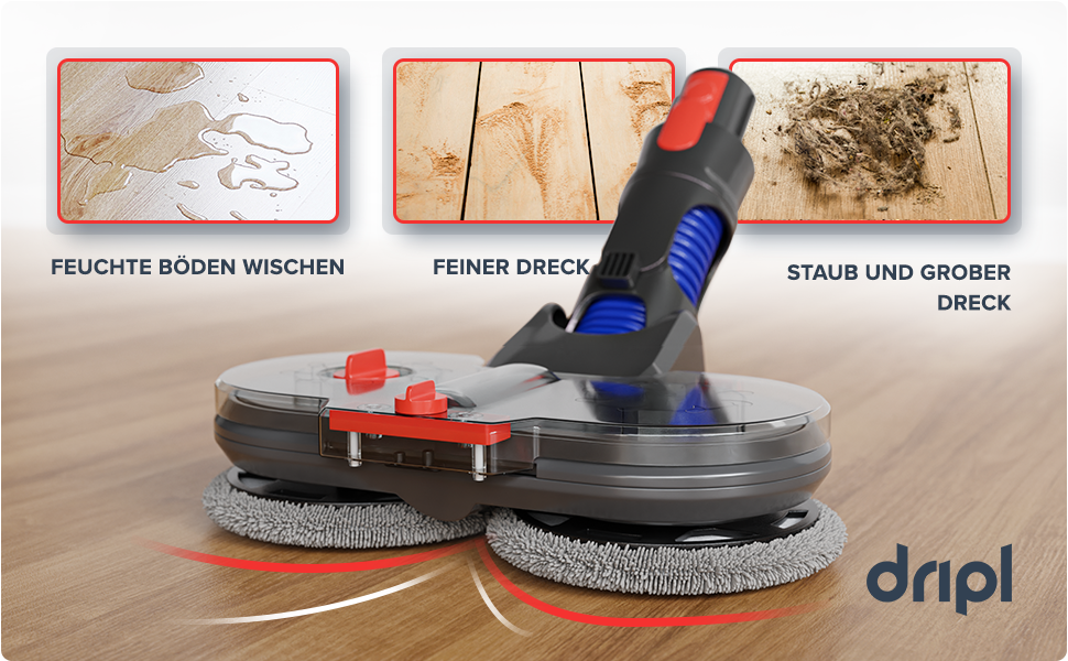 Dann ist Dripl genau das Richtige für dich. Innerhalb einer Sekunde lernt dein Dyson-Staubsauger wie man gleichzeitig den Boden wischt und staubsaugt. Dein Boden bekommt einen neuen Glanz und du ersparst dir dabei Mühe und Zeit.